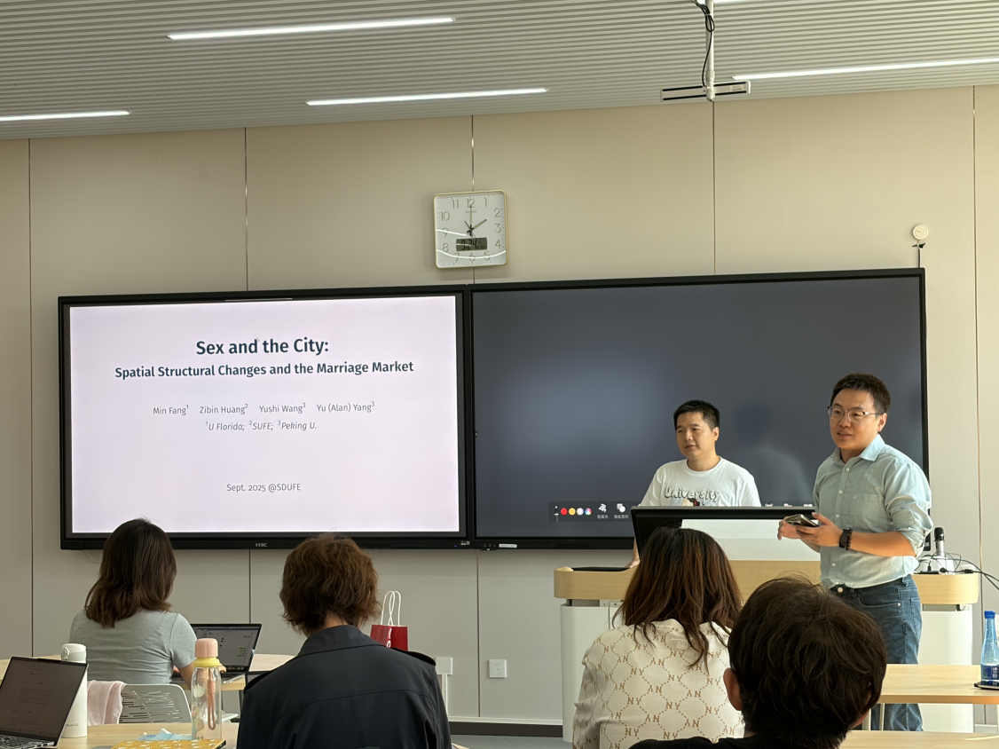 2025年9月24日下午2时,永利集团3044在沙河校区二教215教室举办“中青年学者讲座”2025年秋季学期第2讲。本次讲座特邀上海财经大学商公司黄子彬副教授主讲,主题为“Spatial Structural Changes and the Marriage Market”。本次活动由永利集团3044欢迎你科研创新专项工作主任赵扶扬主持、由永利集团3044欢迎你青年科研创新团队支持,30余位公司师生共同参与。