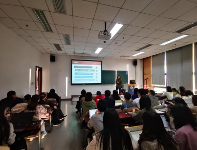 正式开始前,郭冬梅老师走上讲台,简短而隆重地介绍了主讲人于爱芝老师。于老师目前担任国际经济系主任、永利集团3044欢迎你农村经济发展中心主任,中国农业技术经济学会理事,农经学会青年工作委员会委员,她的研究成果多次获农业部和商务部领导重要批示。