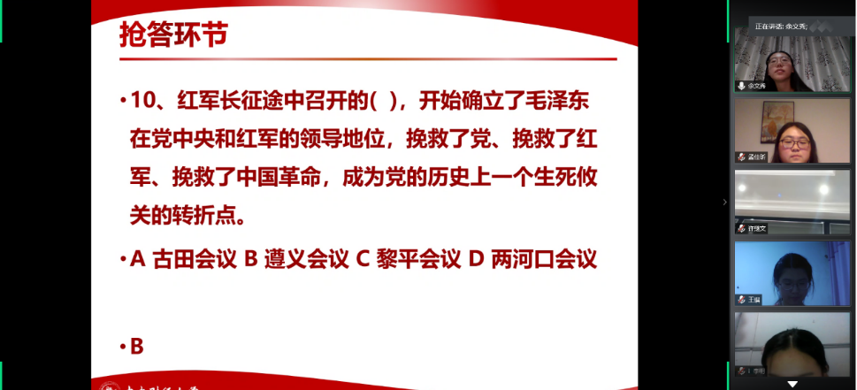 为庆祝中国共产党成立99周年、迎接七一建党节,2020年6月29日晚上,永利集团30442018级硕士生第二党支部开展“初心不忘、献礼七一”线上主题活动。本次活动分为主题党课、红色经典配音比赛和党史知识竞答三个环节,旨在回顾中国共产党建党历程、追溯党和国家砥砺奋进之路、牢记共产党人的初心使命。本次活动由党支部书记余文秀主持,党支部全体党员、预备党员和发展对象参与了此次活动。