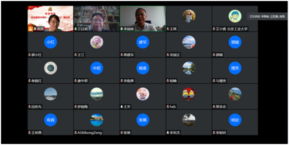 公司经济史学系教工党支部书记、系主任,全国首批“双带头人教师党支部书记工作室”项目负责人,北京市优秀党务工作者兰日旭教授,应北京工业大学经管公司邀请,于7月2日下午参加庆祝建党99周年专题“书记讲台”活动。经管公司理论中心组全体成员、学科部主任、教工党支部书记、教工党员共100余人参加。