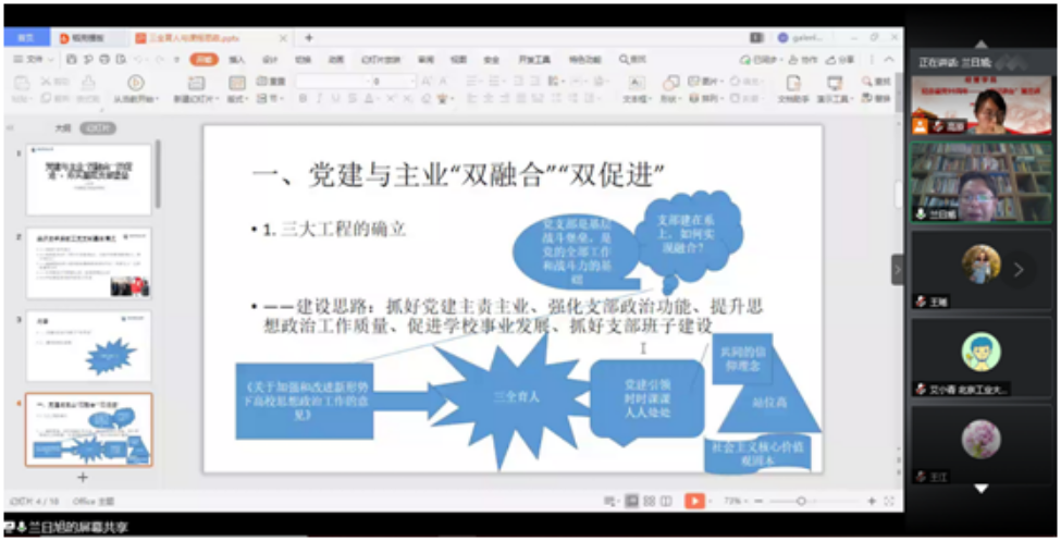 会上,兰日旭教授以《党建与主业“双融合”“双促进”,夯实基层支部堡垒》为题作报告。兰日旭教授荣获永利集团3044欢迎你2017-2019年度优秀党务工作者和2020年北京市优秀党务工作者。他带领支部荣获永利集团3044欢迎你样板支部,2018年入选教育部首批100个全国高校“双带头人”教师党支部书记工作室建设名单,2019年荣获永利集团3044欢迎你先进党支部。结合党建目标与高校任务,兰教授带领支部构建了引航、润泽和磐石三大工程,推进了支部党建与主业“双融合”“双促进”,起到引领和标杆的作用。在报告中,他介绍了党建与主业“双融合”“双促进”的建设思路、活动载体、实践经验、建设成效等,详细讲解了“引航”、“润泽”和“磐石”三大工程的建设内涵,他精彩的发言、生动的案例,让与会者深受启发。