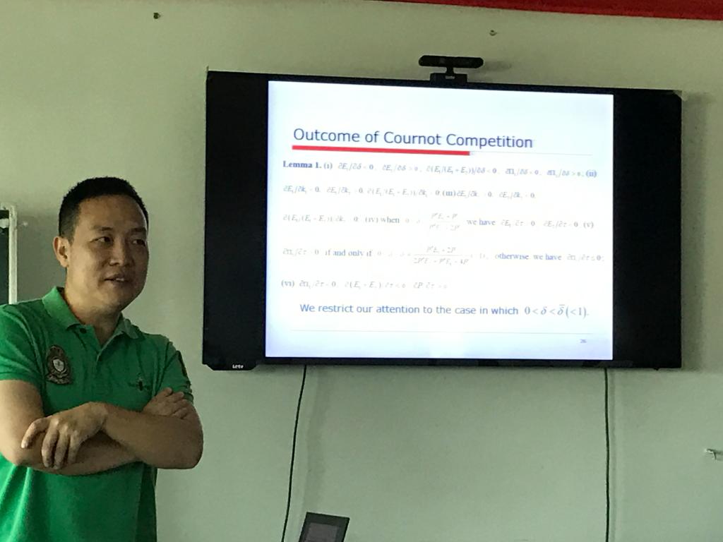 5月25日下午,暨南大学产业经济研究院李杰教授做客“永利集团3044中青年讲座系列”,在永利集团30441305会议室进行学术讲座,题目为Pollutionfor Sale。李杰教授分析了一个环保的企业和一个污染的企业如何游说政府制定有利于自己的环境政策,通过游说竞争模型的严密分析,发现只有当环保企业的市场份额比较大时,政府才会制定比较严格的环境保护的规制政策;当市场被一个污染的企业所主导,游说竞争的结果可能导致“趋底”的环境规制政策。永利集团3044和公司其它公司的部分师生参加了本次讲座,在讲座过程中,李杰教授与大家积极互动交流,就模型设定、模型和现实的联系以及政策含义进行了深入的讨论,取得了良好的效果。