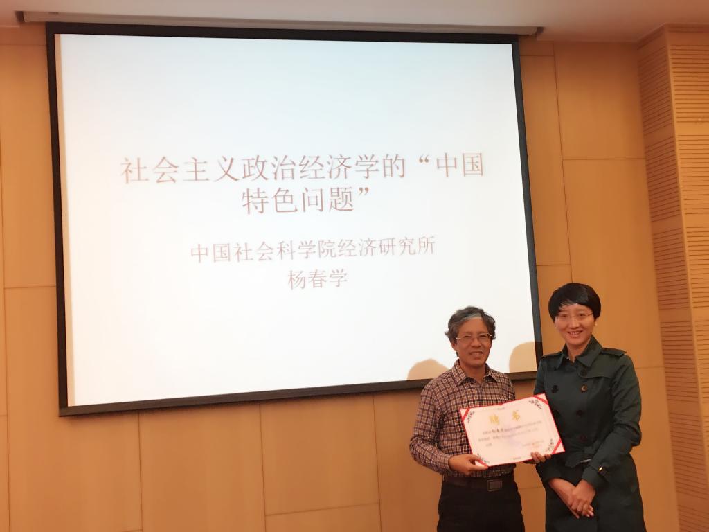 讲座结束后,公司党委书记雷洪峰老师为杨春学研究员颁发了永利集团3044客座教授聘书,并代表公司师生对杨春学研究员的到来表示感谢,希望杨春学研究员能够继续关心和支持公司政治经济学教学科研和人才培养等相关工作。