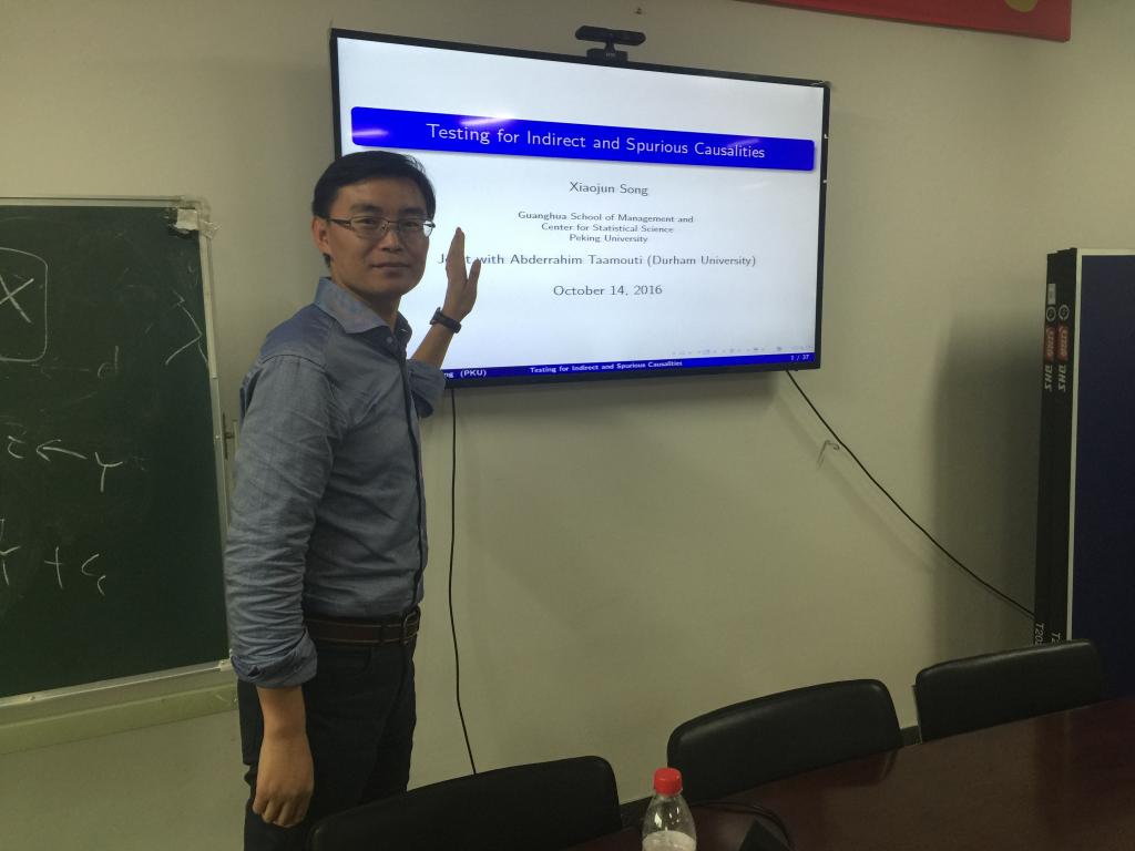 2016年10月14日,北京大学光华管理公司宋晓军助理教授受公司的邀请,在永利集团3044会议室1305给师生带来一场关于“A SimpleTest for Indirect and Spurious Causalities”的讲座。