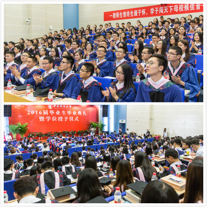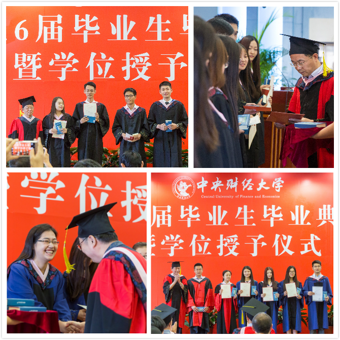 毕业的喜悦掺杂着离别的忧伤,对往日时光的回忆与对未来生活的期盼是毕业生最真的情感。经济学12级本科生以“青春之歌”为题,用朗诵来告别“爱人们”,“在最急最美的时光里,我们的遇见却是如此美丽”;国民经济管理12级本科生以日记的片断回顾他们光阴的故事,“2012年9月1日,晴,开始了老员工活……2016年6月24日晴,我们毕业了”,为老师献上自制的《青春纪念册》,再一次唱起“我们虽然人不算多”的班歌……。2014级硕士毕业生则在相互赠送的书签里留下了彼此间最真诚的祝福,同时为老师呈上了“私人订制”感恩答谢贺卡。毕业时刻,感念师恩,每个毕业班都用自己的表达方式阐述了“经院予我,时光予你”的特殊意义。之后,在93名硕士毕业生的倡议下,公司2016届202名本硕博毕业生面向恩师、面向亲友、面向自己郑重承诺,庄严宣誓“谨遵师长教诲,弘扬经院精神,格物明德,不事空谈,惟新前行,拼搏敢当,无论身居何处,心怀光明,坚守信仰,无论贵贱贫富,立己达人,经世济民”。