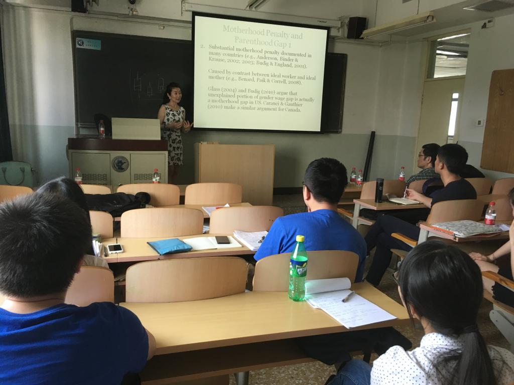 访问期间,Fei教授于5月19日下午在本部主教学楼308教室和永利集团3044的师生举行了研讨会,其主题是Howcompetitive are female professionals? A tale of identity conflict。Fei教授首先对实验经济学的实验设计理论和所需要用到的计量经济学工具进行了简要的介绍,之后报告了其最新文章。该文章主要针对就业市场中女性的竞争力展开,深入的剖析了女性在劳动力市场的表现。研讨会期间,永利集团3044的王海港教授、张舰教授和黄乃静教授等对该主题内容和Fei教授进行了交流和讨论。