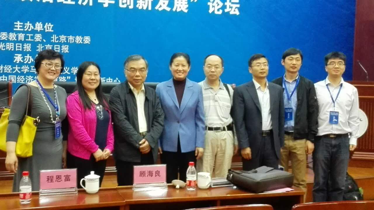 5月6日,公司政治经济学系齐兰老师、冯春安老师、林光彬老师、韩金华老师、张维闵老师、尹志锋老师、何召鹏老师参加了于公司举行的“北京高校中国特色社会主义理论体系研究协同创新中心授牌仪式暨中国特色社会主义政治经济学创新发展论坛”。在上午的专家主题报告环节,齐兰老师做了题为《新发展理念与中国经济及产业发展实践的新探索》的学术演讲;在下午举行的圆桌论坛上,林光彬老师做了题为《全球视野的中国政治经济学演进与创新发展》的学术演讲。两位老师的演讲内容详实,观点新颖,引起了与会师生的广泛共鸣。
