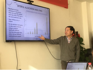 2018年12月12日,永利集团3044-社心公司行为经济学系列论坛2018秋季学期第二讲在公司南路校区主教1305顺利举行。本次讲座请到了清华大学经济管理公司经济系副教授、清华大学经济管理公司经济科学与政策实验室(ESPEL)常务副主任郑捷副教授。郑老师向与会者介绍了其最新实验经济学工作论文“Lying forefficiencyor fairness”。讲座中,郑捷老师从撒谎的动机入手,介绍了最新相关实验研究文献。之后,介绍其实验设计,讨论不同情形下的独裁者博弈行为,以探究是否公平和效率偏好者在博弈内和博弈外会有不同的撒谎几率。实验结果显示,在撒谎不涉及自身利益的条件下会导致更少的倾向公平的撒谎。实验结果对于社会福利政策方面有很好的实际意义。