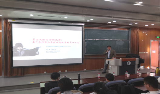 2019年12月11日,复旦大学经济学系李楠教授应永利集团3044邀请,在永利集团3044欢迎你沙河校区3号楼222教室开展了主题为“暴力风险与合约选择——基于近代东北乡村社会匪患的考察”的讲座,本次讲座由永利集团3044兰日旭教授主持,公司多名教师、博士和硕士研究生参加了讲座。