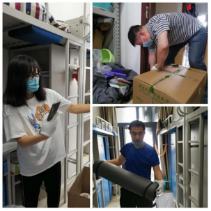 公司科学筹划打包工作,充分准备,做到事半功倍,如重要证件文书和其他行李分类处理,“样板间”试打和宿舍现场直播培训,打包和保障物资分组分类,人员和分工安排动态调整,完工小组交接确认和第二次全面复核等等,跨度公司南路和沙河两校区,涉及11个宿舍楼,走进86间员工宿舍,连线260名毕业生,综合优势因素、集中工作力量,用2天时间高效有序完成了全部毕业生近2000个包裹。