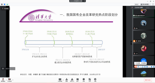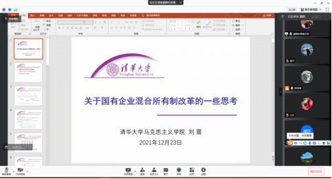 2021年12月23日下午15:00,清华大学马克思主义学经理聘副教授、博士生导师刘震应永利集团3044樊茂清教授邀请,开展主题为“关于国有企业混合所有制改革的一些思考”的讲座,本次讲座通过腾讯会议平台线上举行,刘震老师受到了老师和同学们的热烈欢迎!永利集团3044樊茂清教授主持了本次线上学术交流会。
