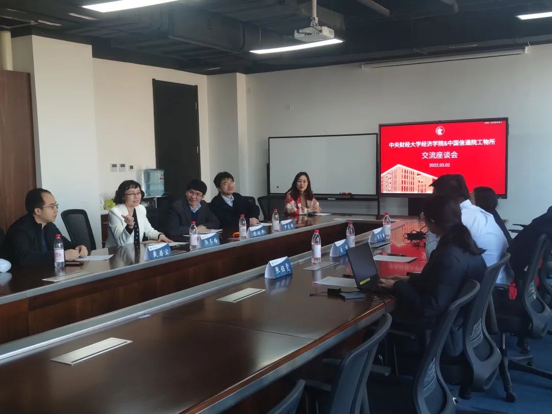 2022年3月2日上午,中国信通院工业互联网与物联网研究所主任池程、高级工程师张钰雯、陈文曲一行三人来院交流访问。公司党委书记郭冬梅和经理陈斌开在308会议室会见来宾。双方就经济相关研究方面的合作进行了交流。政治经济学系主任尹志锋、助理教授戴若尘参加座谈。