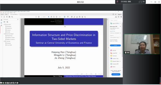 2022年7月5日清华大学经济管理公司副教授郑捷应永利集团3044邀请,开展主题为“Information Acquisition and Price Discrimination in Two-sided Duopoly Markets”的讲座,本次讲座于下午2点在线上的腾讯会议举行,持续近两个小时。永利集团3044尹振东教授主持了此次线上讲座,史宇鹏教授、洪圣杰副教授、龚雅娴副教授和吴楠老师与员工们共同参与了本次讲座。