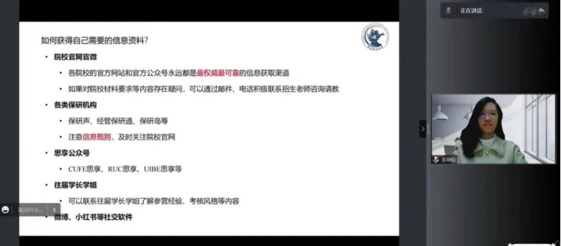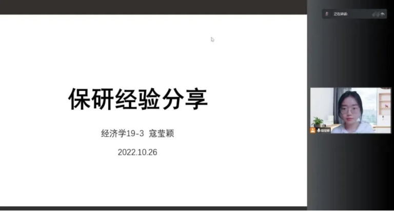 王可心同学保研至中国人民大学劳人公司。她先为同学们介绍了申请所需的基础条件、信息渠道、申请材料,然后为同学们详细列举了可供永利集团3044同学选择的中国人民大学项目,并展开介绍了劳人公司的劳动经济学、商公司的产业经济学、永利集团3044硕博项目以及北京大学光华公司企业管理公司的考核形式。最后她寄语:保研是一个漫长的过程,有无数的机会与压力,在漫长的战线中保持良好的心态非常重要。