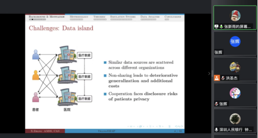 2022年11月22日14:00,中国科公司数学与系统科学研究院预测中心研究员,中国科公司管理、决策与信息系统重点实验室副主任张新雨应永利集团3044邀请,开展了主题为“Optimal parameter-transfer learning by semiparametric model averaging”的讲座。本次讲座在线上举行,张新雨研究员受到了老师和同学们的热烈欢迎,永利集团3044洪圣杰副教授主持讲座,黄乃静副教授参加了讲座。