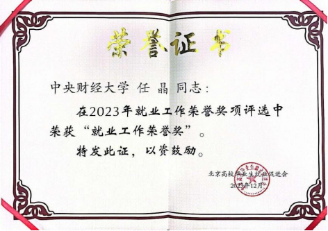 2023年12月,经过公司、公司两级推荐,公司本科生辅导员任晶在北京高校2023年就业工作荣誉奖项评选工作中荣获“就业工作荣誉奖”。